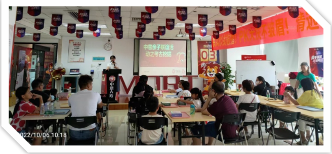国庆节期间, 我公司在本部职场分别举办了流体熊DIY亲子活动及考古挖掘亲子活动,活动开场主持人通过问答游戏让孩子们了解祖国的风土人文、了解我党的光辉历程,了解我国伟大的发展进程,孩子们深受启发,明白了盛世中华离不开先烈们的奉献与牺牲,离不开祖祖辈辈的努力奋斗,少年们表示要为中华崛起而努力读书。通过系列活动,进一步拉近与客户之间的距离,让客户感受中意人寿的人文关怀。