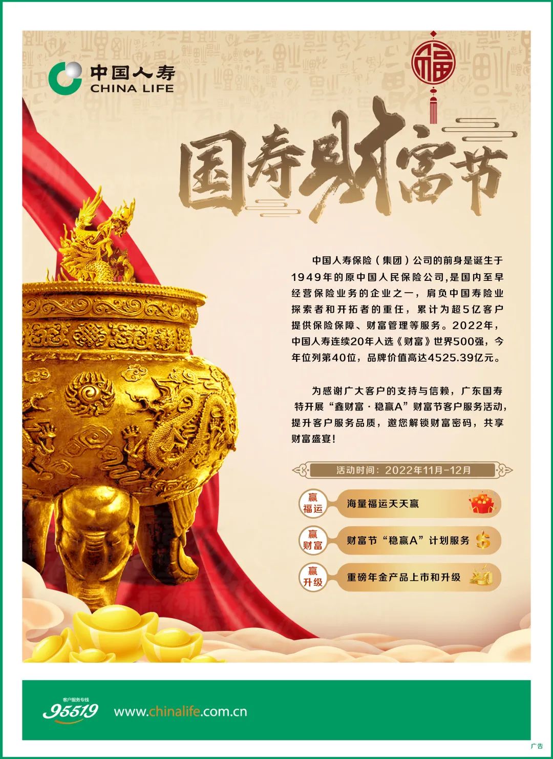 为感谢广大客户的支持与信赖,广东国寿特开展“鑫财富·稳赢A”财富节客户服务活动,提升客户服务品质,邀您解锁财富密码,共享财富盛宴!