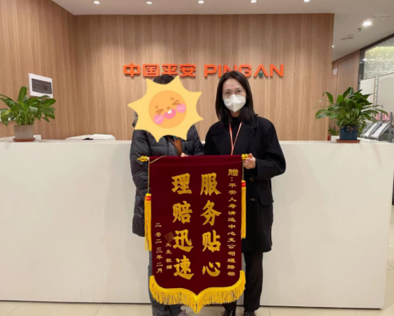 2023年2月27日下午,在平安人寿清远中心支公司的职场,一位客户家属向平安理赔部工作人员送上锦旗,对其贴心迅速的服务表示由衷地感谢。