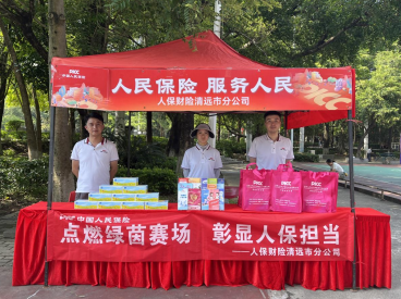 7月26日决赛当天,人保财险清远市分公司组织工作人员设立宣传展位,通过发放宣传手册、互动问答等形式,向现场观众普及车辆保险、健康险及防范非法集资活动、防范金融诈骗等知识,同时结合赛事特点,重点推广意外险产品,赢得参赛选手及观众的广泛关注。