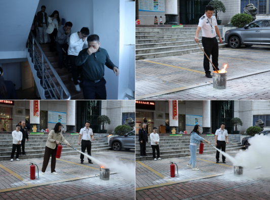 随着模拟火灾警报的拉响,实战应急演练正式拉开帷幕,演练模拟了办公场所浓烟弥漫的场景。参训员工迅速反应,捂住口鼻,弯腰低姿,按照预定疏散线路,快速、有序地撤离至指定安全集合点。在教官指导下,参训员工迅速使用灭火器对模拟火源进行扑救,顺利完成灭火任务。
