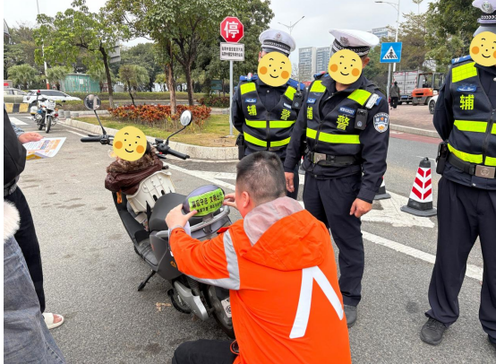 针对夜间骑行存在的安全隐患,本次活动重点推进“亮尾行动”。平安志愿者为过往电动自行车、摩托车免费检测灯光系统,并逐一粘贴高亮度反光标识,显著提升车辆夜间可视性,降低碰撞风险。