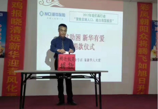 6月26日,新华保险清远中支召开2017年“广东扶贫济困日”暨“扶贫助困 新华有爱”精准扶贫公益捐款活动。