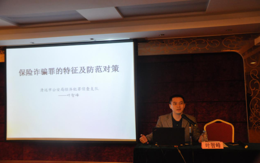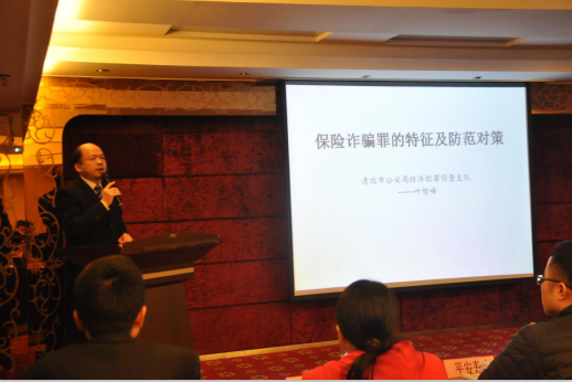 此次培训特邀清远市公安局经济犯罪侦查支队二大队大队长叶智峰分别就保险诈骗的特征和保险欺诈的防范措施等内容进行专业讲解。部分参会公司在培训会议上进行了反欺诈工作经验交流。