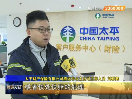 2018年2月,太平财险清远中支联合太平人寿清远中支、市交警支队推出主题为“春运最前线”的春运交通新闻特辑。每年春节,清连高速都会迎来巨大的车流,而春运又是百姓们每年关注的热点,为了在这浓浓的春节给广大百姓送上祝福,太平财险清远中支与太平人寿、市交警支队在清远公共频道《百姓关注》栏目推出“春运最前线”新闻特辑。