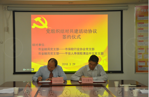 随后,清远市保险行业协会党支部、平安人寿清远中支党支部分别与市金融局党支部签订“党组织结对共建活动协议”。