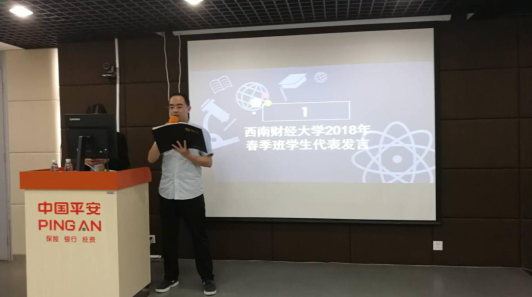 典礼上,太平产险李雅松代表新生发言,他代表全体同学表态:要不断学习、更新自己的知识结构和拓展自己的知识面,不断地完善和丰富自己、提升自己。随后,市保协有关工作人员针对西南财经大学网络学习系统等学习方式和问题向同学们进行了详细的讲解。